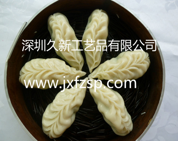 南京名点小吃仿真菜:一绝素菜蒸饺仿真菜,均匀有致的细折子,优美动人的曲线生动形象的把一份刚出笼的蒸饺展现在您面前,似乎一股浓郁的青香味扑鼻而来/